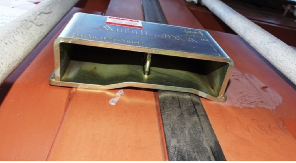 Cache-cadenas permettant de sécuriser un container maritime d’occasion. Ce produit est composé de 2 parties: