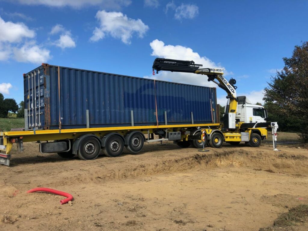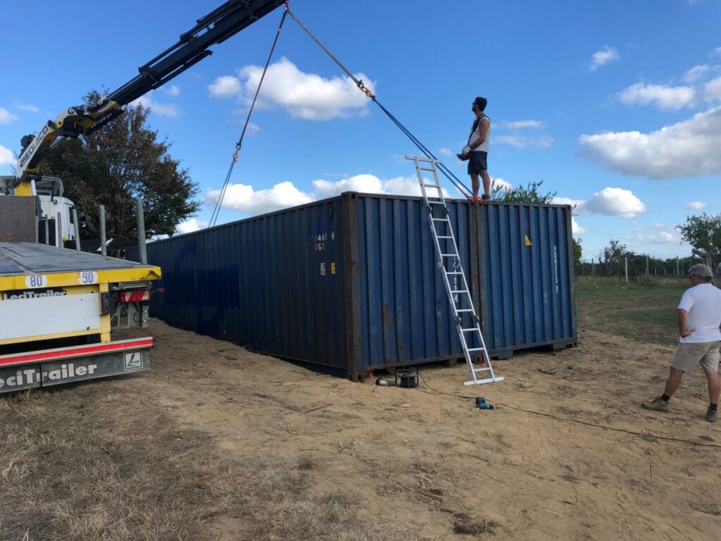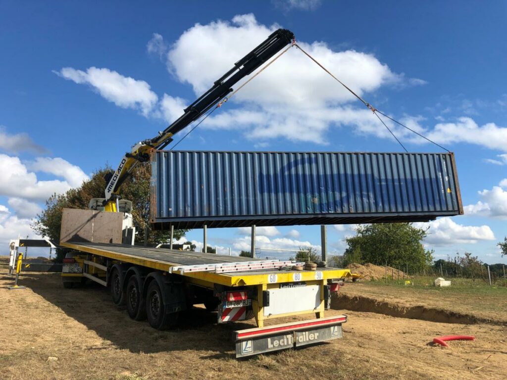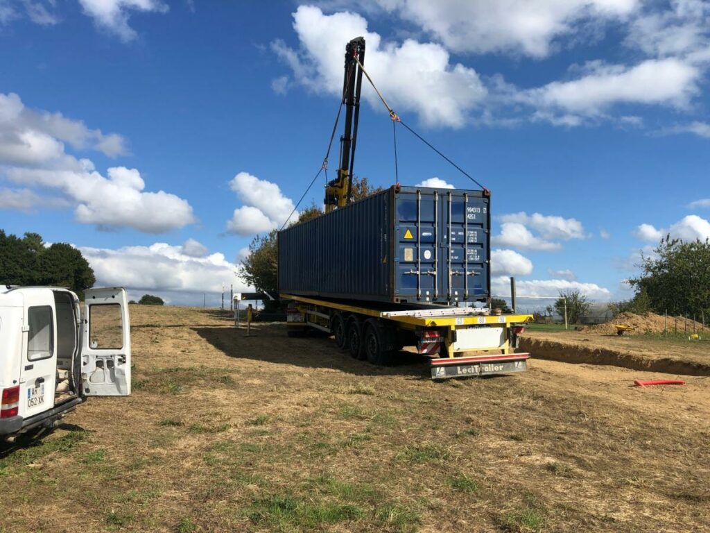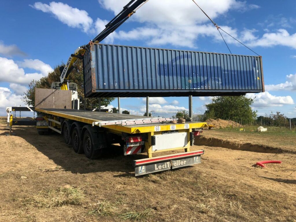 Ces containers seront transformés puis aménagés en garage / atelier, d’une surface de 56m². Coût des « murs » du garage: 5900€ TTC transport et déchargement compris.