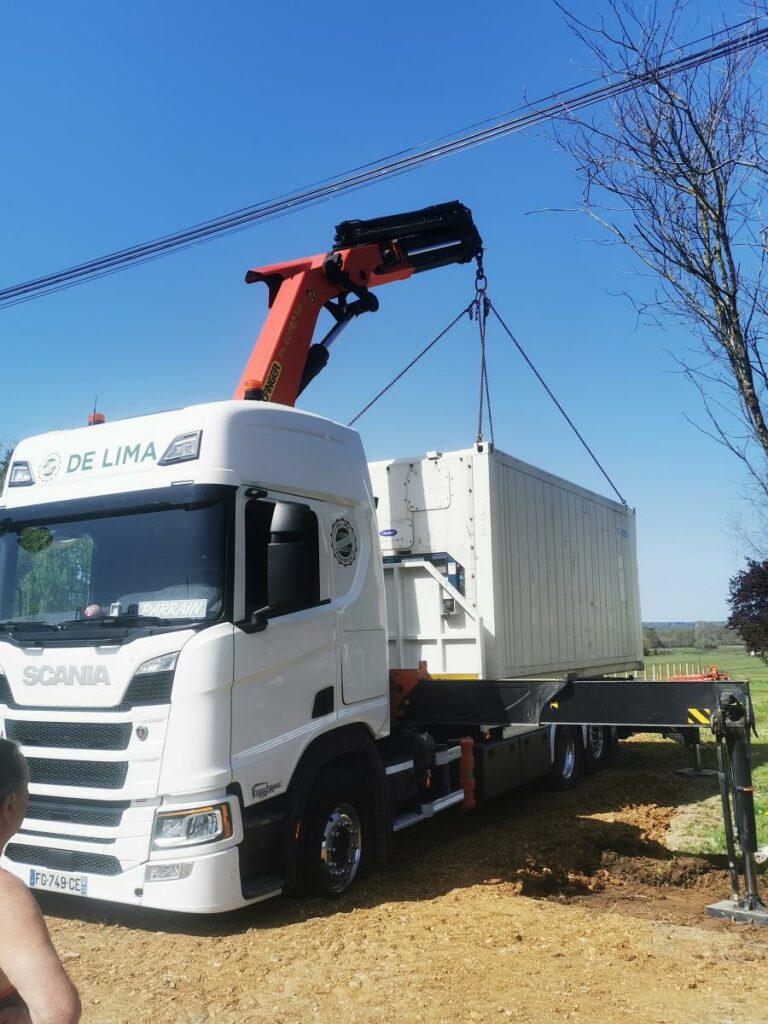 Notre partenaire en transport bordelais a une fois de plus réalisé un travail exemplaire: pose du container selon la convenance du client. Opération réussie. Et même quand au moment de partir, le camion s’enlise dans la terre, on a toujours une solution!