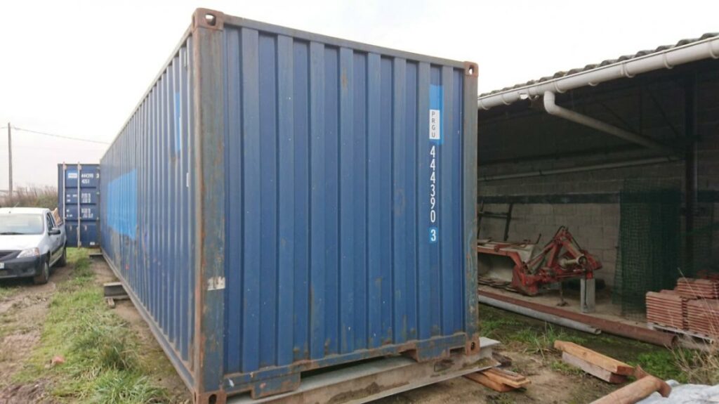 Parlons container: un 40 pieds a une surface de 28m², un volume de 66m3. Il est imposant, mais aujourd’hui, c’est le container présentant le meilleur rapport prix/m².